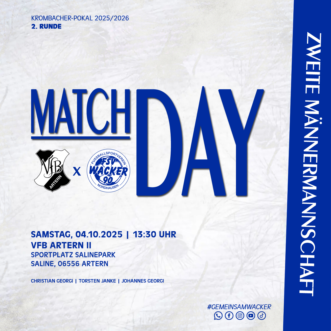 Wacker-Reserve muss im Pokal bei der Zweitvertretung vom VfB Artern ran 💙🤍