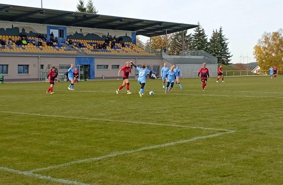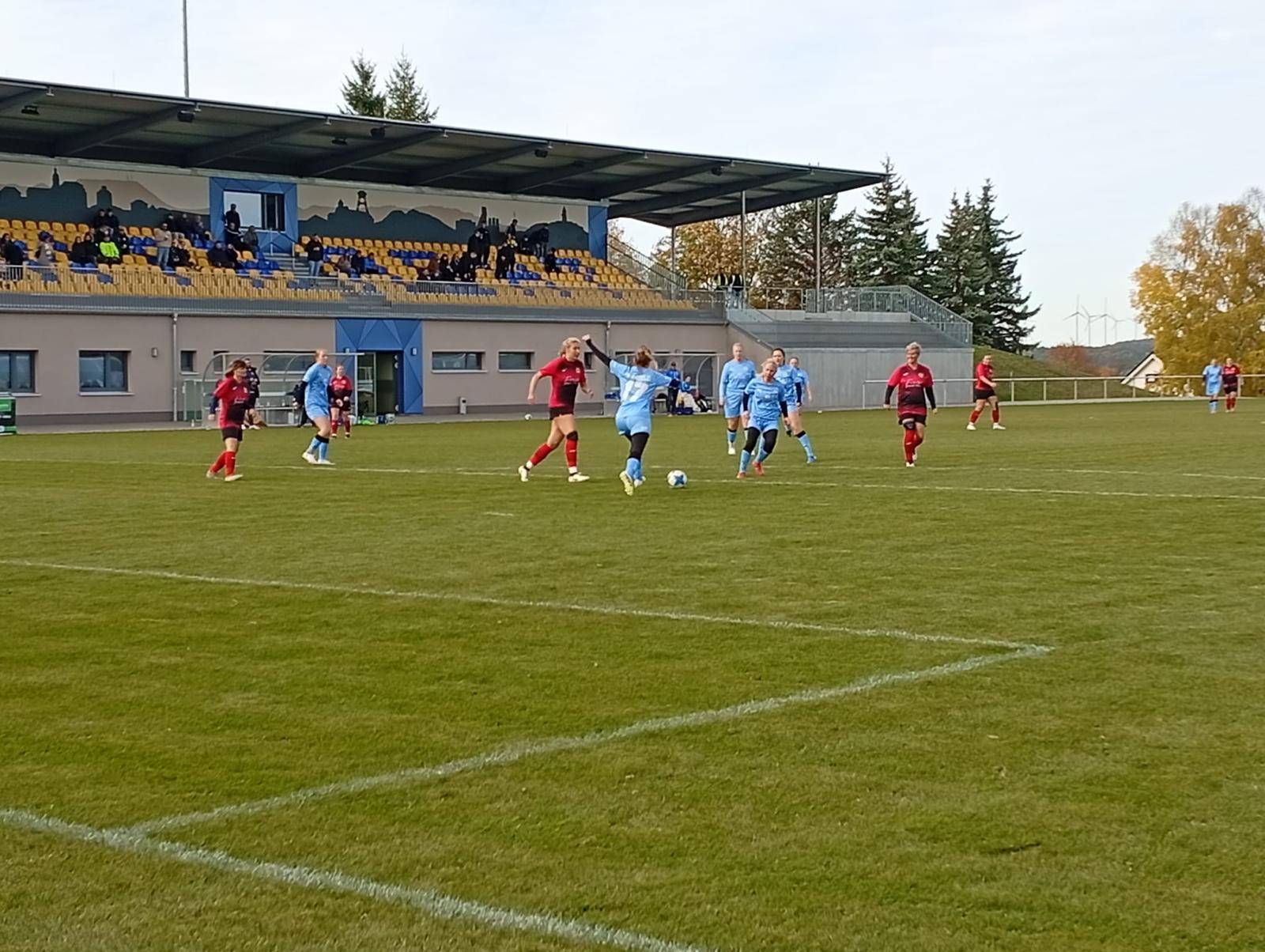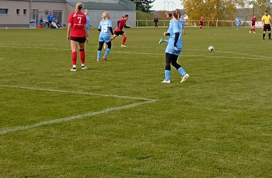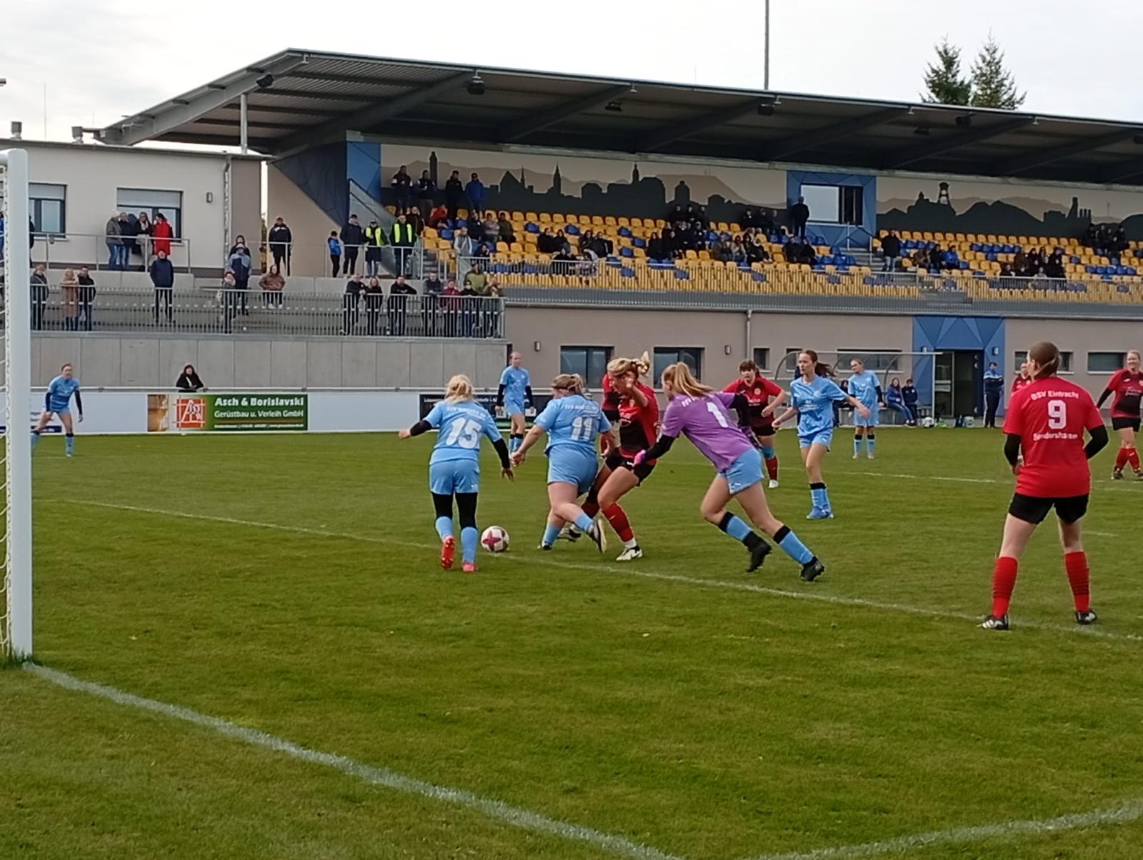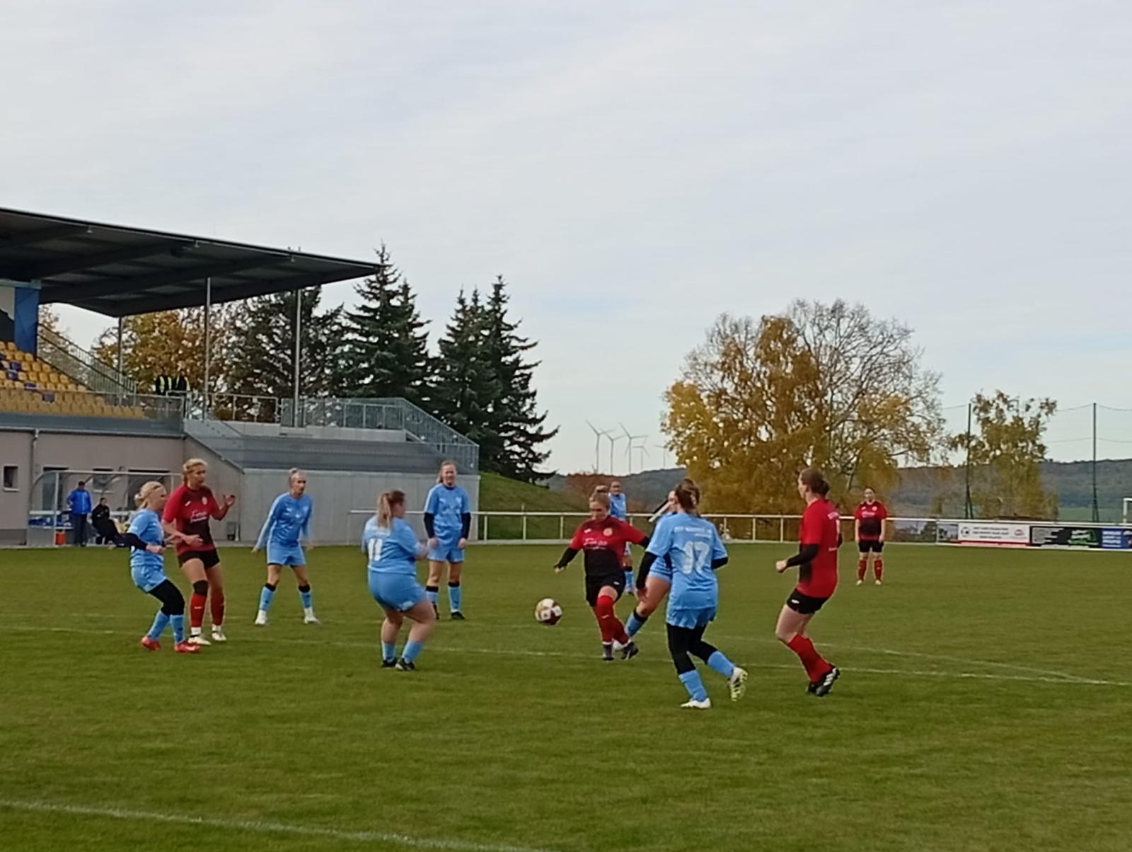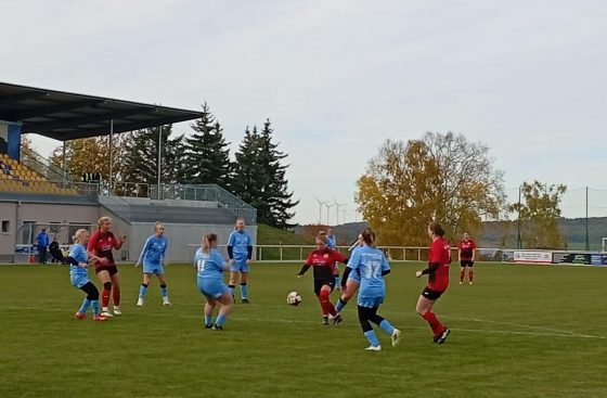 In der Kreisoberliga mussten unsere Fußballerinnen am Sonntag bei der Eintracht aus Sondershausen ran. Vor 123 Zuschauern auf dem Göldner lief die Begegnung des 6. Spieltages allerdings nicht in unsere Richtung. Die Gastgeberinnen setzten sich nach 90 Minuten mit 9:4 durch. Am Ende reichen 4 Derbytore nicht, um die Eintracht ernsthaft in die Bredouille zu bringen. Trotz der Niederlage sah Trainer Detlef Ludwigs wieder gute Ansätze im Spiel seiner Elf und vier blau-weiße Buden, für die Jessica Schleusing und Michelle Peter per Doppelpack sorgten.