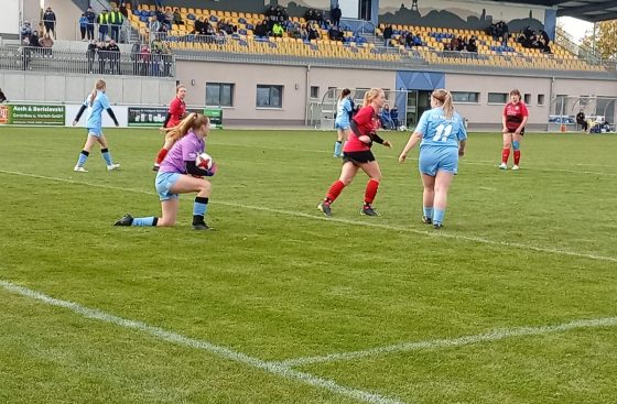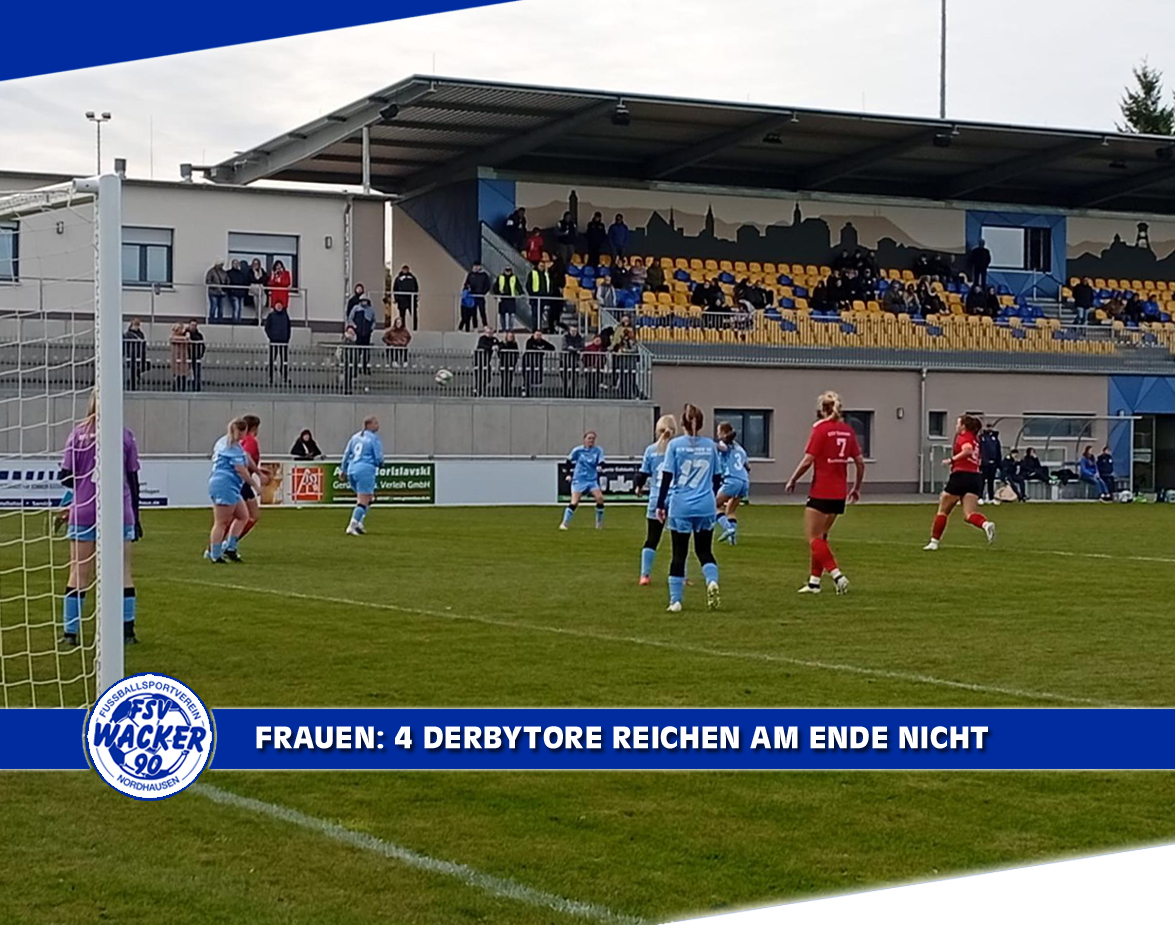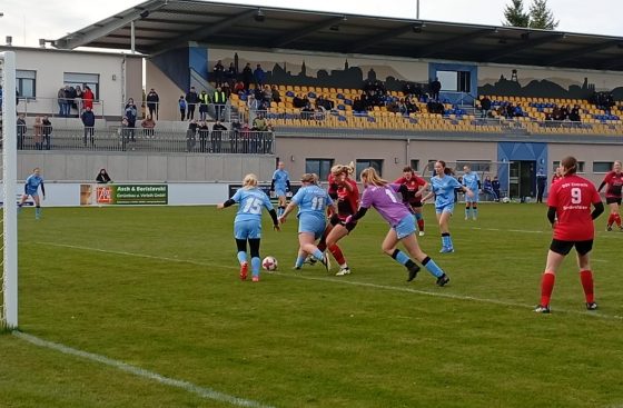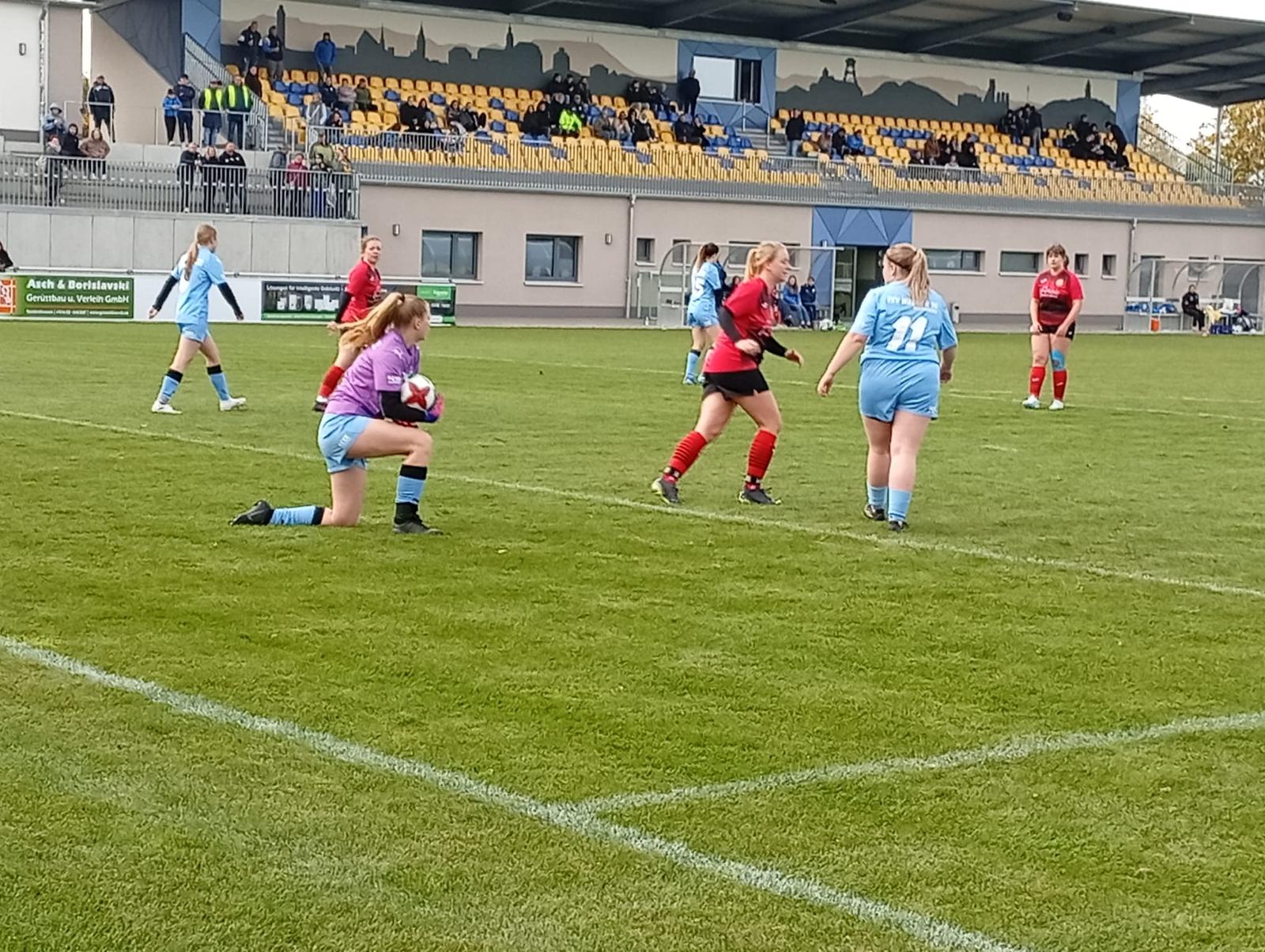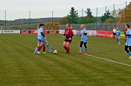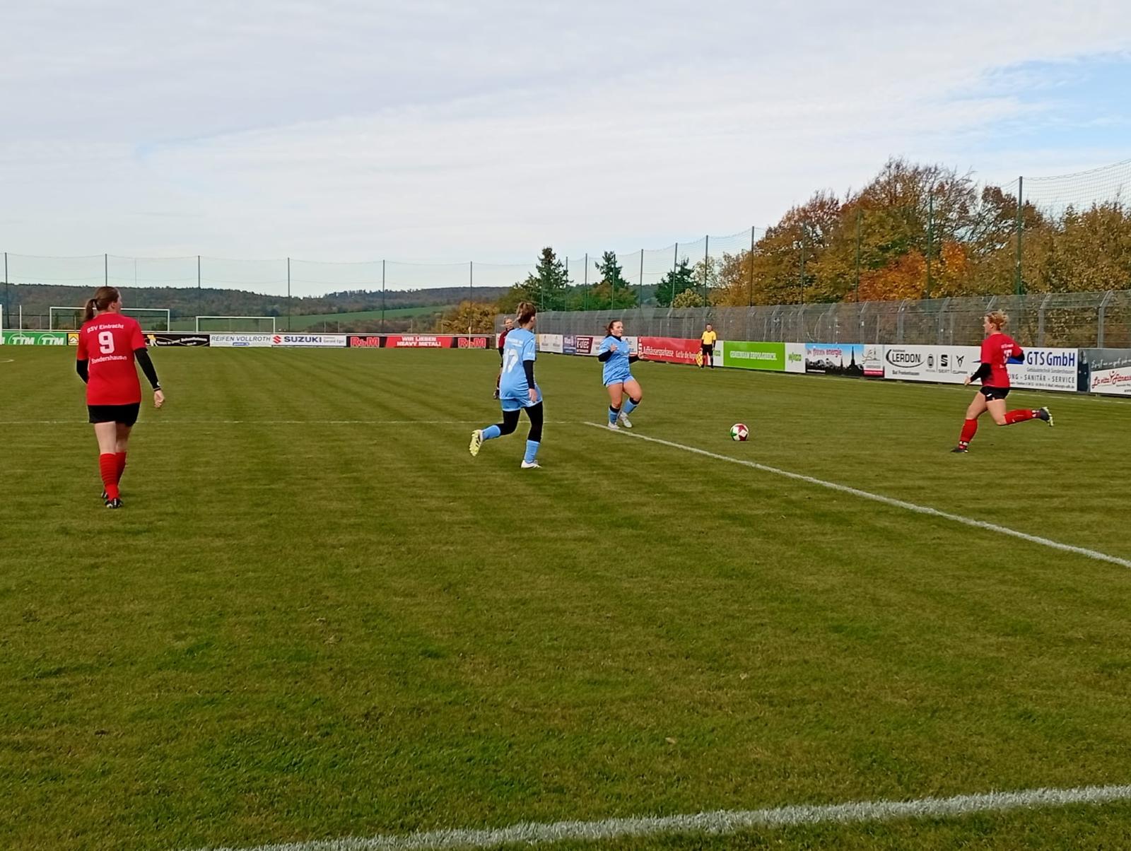 In der Kreisoberliga mussten unsere Fußballerinnen am Sonntag bei der Eintracht aus Sondershausen ran. Vor 123 Zuschauern auf dem Göldner lief die Begegnung des 6. Spieltages allerdings nicht in unsere Richtung. Die Gastgeberinnen setzten sich nach 90 Minuten mit 9:4 durch. Am Ende reichen 4 Derbytore nicht, um die Eintracht ernsthaft in die Bredouille zu bringen. Trotz der Niederlage sah Trainer Detlef Ludwigs wieder gute Ansätze im Spiel seiner Elf und vier blau-weiße Buden, für die Jessica Schleusing und Michelle Peter per Doppelpack sorgten.