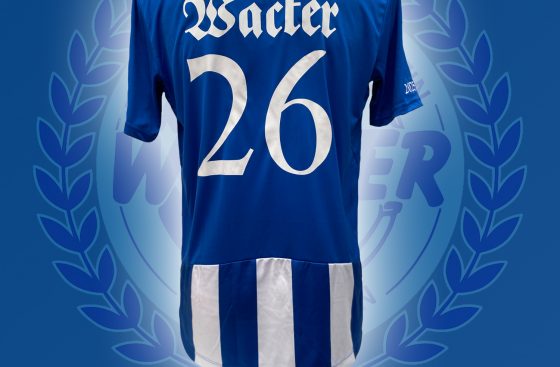 Das Trikot sticht mit einem 3D Traditionslogo, gestickte Jahreszahlen 1905 und 2025 auf den Ärmeln, gestickte Jahreszahl 1905 am Kragen, Name „Wacker“ und Rückennummer in altdeutscher Schrift hervor.